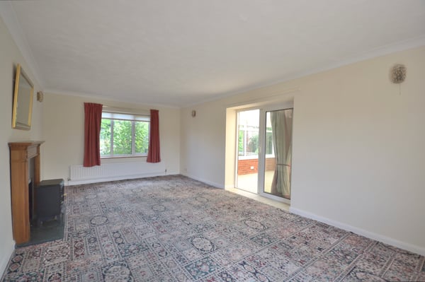 21' 05" x 11' 11" (6.53m x 3.63m) Carpeted, two radiators, electric fireplace, window to front and rear aspect, sliding doors leading to