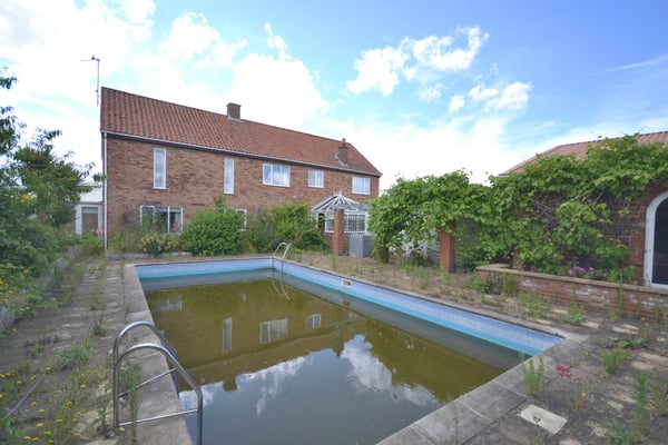 Rear - Mainly laid to patio with heated swimming pool (using an air source heat pump) and access to the barn.