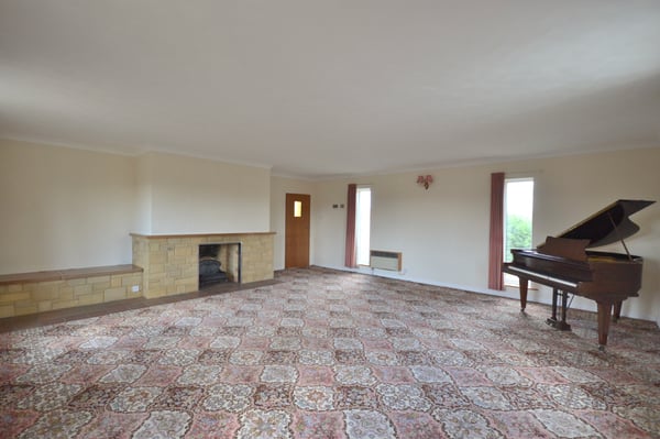 21' 05" x 21' 05" (6.53m x 6.53m) Carpeted, two radiators, windows to front, side and rear aspect, feature brick fireplace with TV unit