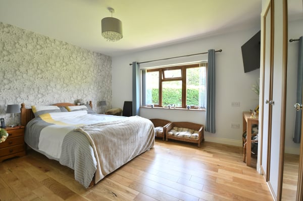 The 1/2 an acre of gardens are a feature that really sets this property apart from the rest. The private driveway leads to a shingled parking area providing ample parking. Leading from the kitchen and living room you will find a large patio area and the remaining garden wraps around the property, with mature trees and planted borders. There is also a partially separate garden accessed via a gate which is a substantial lawned area (140ft x 140ft estimated measurements) with mature fruit trees which has the potential for further development, subject to the necessary planning permissions.