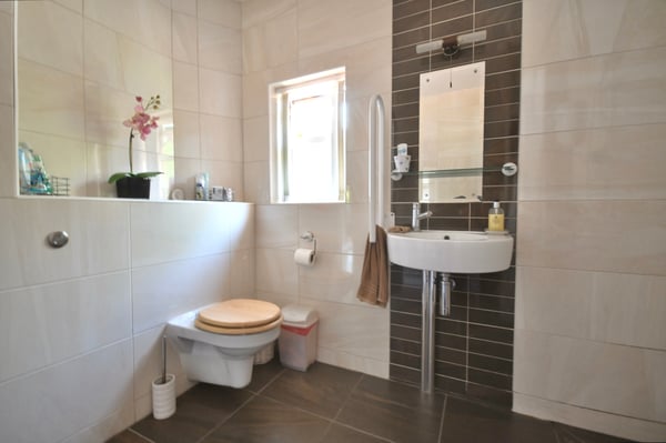 Double glazed window to front, low flush w/c, vanity wash hand basin, radiator and tiled flooring.