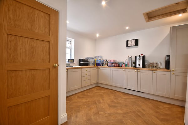 33' 6" x 14' 0" (10.21m x 4.27m) Double glazed windows to front, rear and side, double glazed bifold doors to garden, fitted kitchen with quartz worktops, centre island with breakfast bar, space for Aga, space, for fridge freezer, integrated dishwasher, Belfast sink, pantry cupboard, two Velux windows, radiator and tiled flooring.