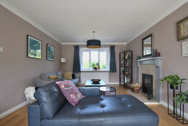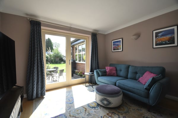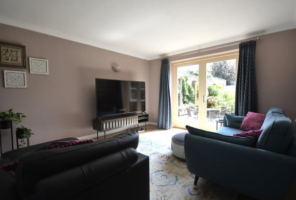 22' 11" x 12' 11" (6.99m x 3.94m) Wood flooring, multi fuel log burner with surround, window to front aspect, radiator, patio doors leading to rear garden