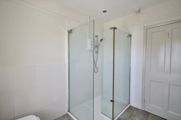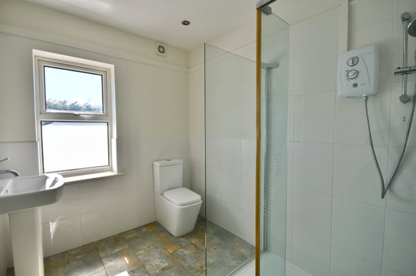 8' 10" x 6' 8" (2.69m x 2.03m) Double glazed window to rear, shower enclosure with electric shower, low flush w/c, wash hand basin, towel radiator and tiled flooring.