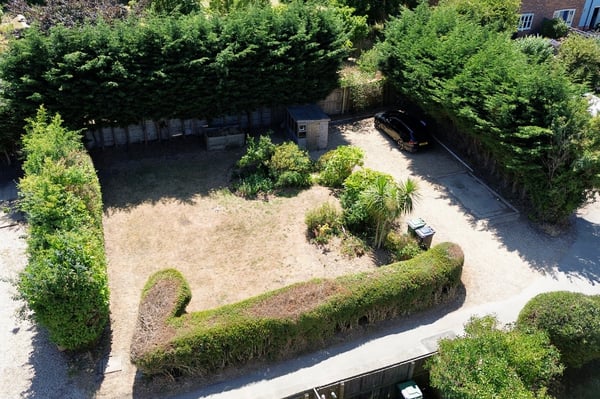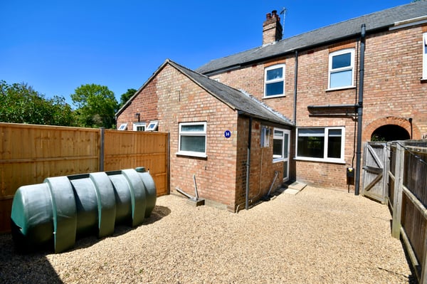 To the front of the property is an enclosed shingled area with the oil tank, to the rear of the property is another small shingles area.
