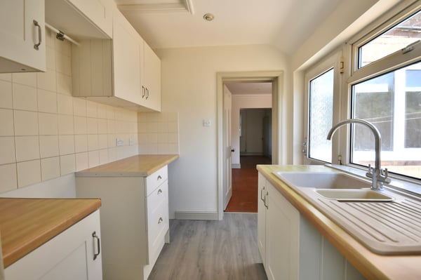 7' 11" x 6' 11" (2.41m x 2.11m) Double glazed door and window to side, fitted kitchen with sink and space for oven and fridge, access to loft and vinyl flooring.