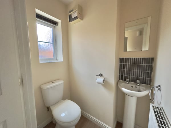 Low level WC, Wash hand basin and window to front.