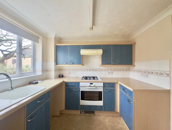 8' 6" x 7' 9" (2.59m x 2.36m) Double glazed window to front, fitted kitchen with matching wall and base units, single bowl single drainer sink, integrated oven and hob with extractor above, space for washing machine and fridge freezer.