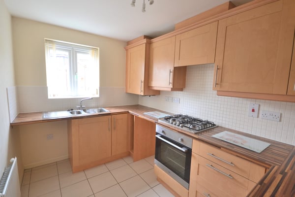 Fitted with a range of wall mounted and wall base units, electric oven, gas hob, integrated extractor plumbing for both washing machine and dishwasher, space for upright fridge freezer, tiled floor, tiled splash backs and UPVC window to front.