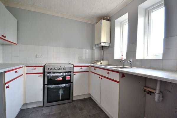 Double glazed windows to front, fitted kitchen with stainless steel sink, gas central heating boiler, freestanding oven, space for fridge freezer and washing machine, and laminate flooring.