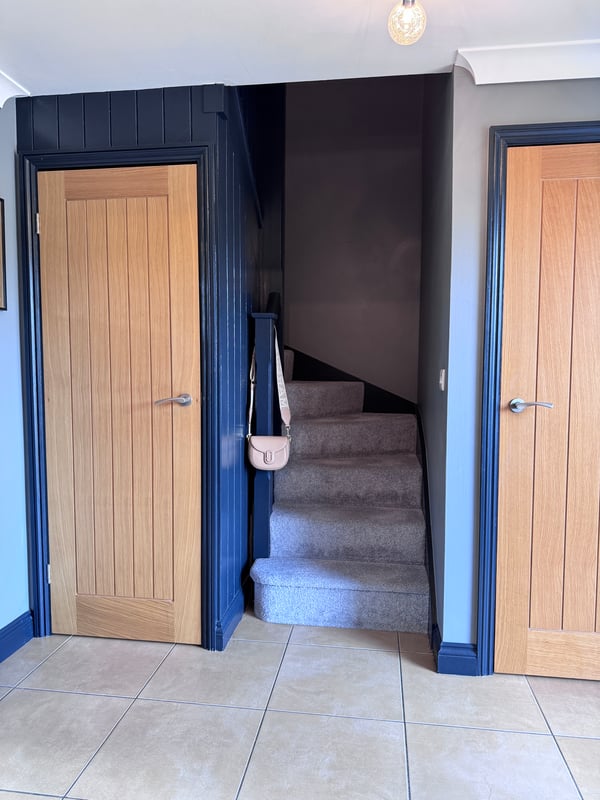 3.19m x 1.63m (10' 6" x 5' 4") Double glazed composite door & UPVC double glazed window to front aspect, tiled floor, under floor heating, under stair storage, stairs to first floor, doors to -