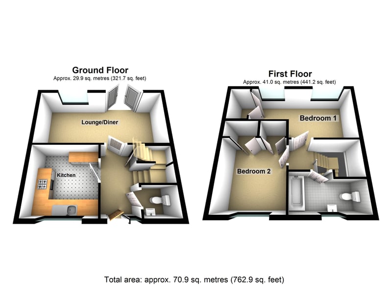 Stylishly decorated throughout you are greeted with a good size entrance hall leading you the Kitchen breakfast room, lounge diner with double doors to the rear garden, under stair storage and cloak room. To the first floor are the two double bedrooms, both with built in storage and a family bathroom.