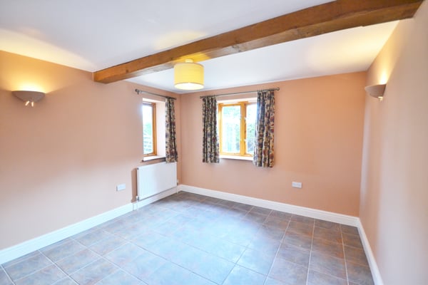 11' 7" x 11' 2" (3.53m x 3.40m) Dual aspect room, ceramic tiled floor, radiator and exposed ceiling timbers.