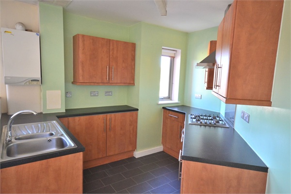 With wall & base units, gas hob, electric oven, plumbing for washing machine, window to front.