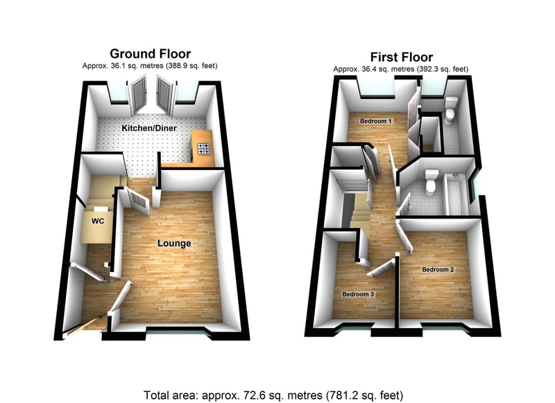The ground floor offers cloakroom, Lounge, Kitchen Diner and to the first floor, three bedrooms, master with fitted wardrobes & en suite and family bathroom.
