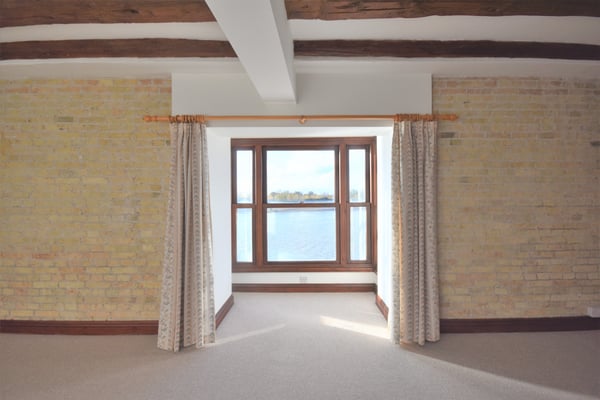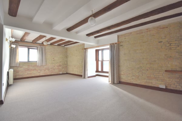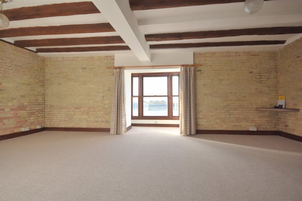 11' 8" x 22' 3" (3.56m x 6.78m) Double glazed window to side and double glazed bay window with beautiful views over the River Ouse, fitted carpet, two storage heaters, exposed brick, feature beams and open access to kitchen.