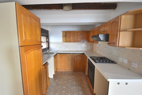 8' 4" x 8' 0" (2.54m x 2.44m) Double glazed window to side, fitted kitchen with a range of wall mounted and base storage cupboards, electric hob and oven, extractor above, space and plumbing for washing machine and vinyl flooring.