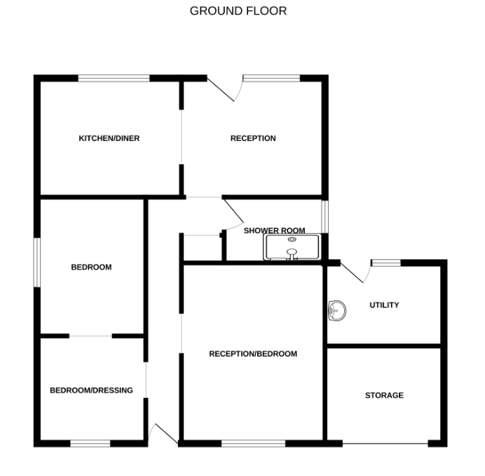 UPVC double glazed composite door, UPVC double glazed window, WC, vanity unit with inset hand wash basin, space and plumbing for washing machine and tumble dryer, plumbing for shower unit.