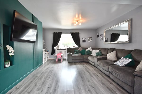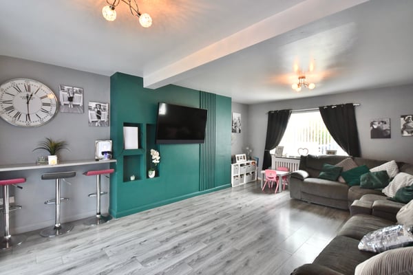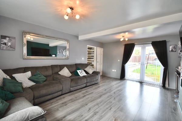 19' 6" x 13' 7" (5.94m x 4.14m) Double glazed window to front, double glazed doors to rear, radiator and laminate flooring.