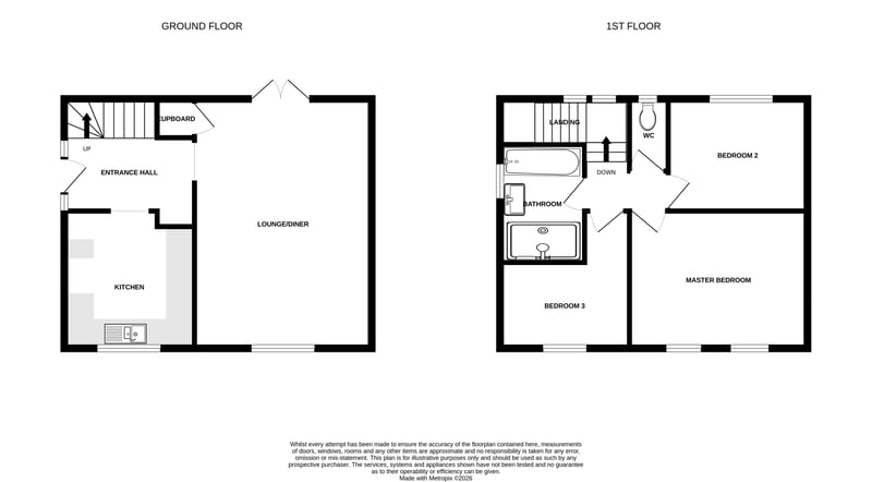 10' 2" x 9' 8" (3.10m x 2.95m) Double glazed window to front, fitted kitchen with space for range style cooker, space for washing machine, tumble dryer, fridge freezer and dishwasher, and tiled flooring.