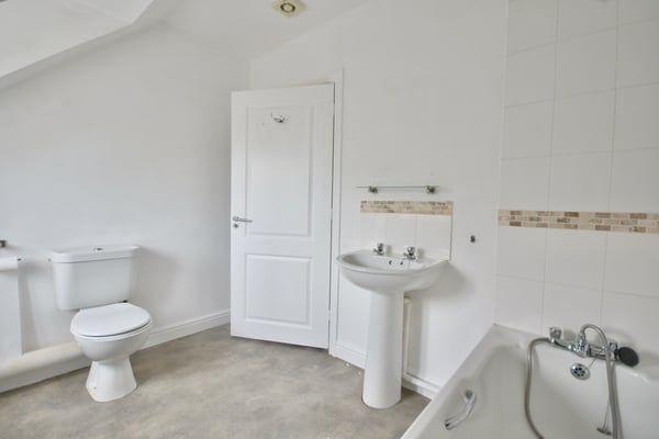 7' 7" x 9' 2" (2.31m x 2.79m) Double glazed window to front, panel bath, low flush w/c, wash hand basin, radiator and vinyl flooring.