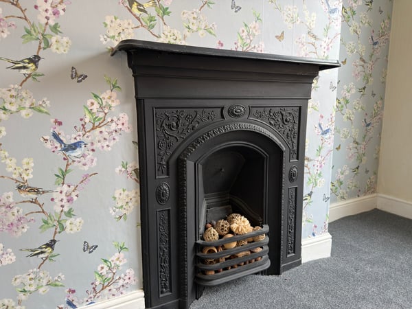 Fitted carpet, feature fire place, radiator and window to rear.