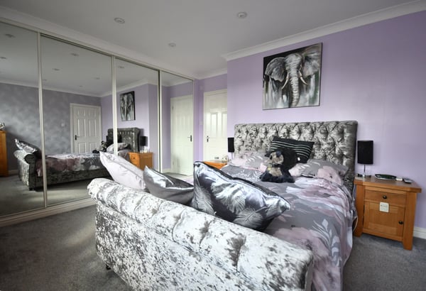 13' 08" x 13' 10" (4.17m x 4.22m) Carpeted, Air Con Unit, built in wardrobes with sliding doors, radiator, window to rear aspect,