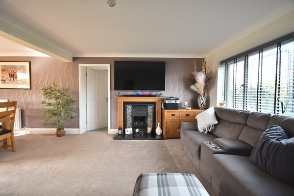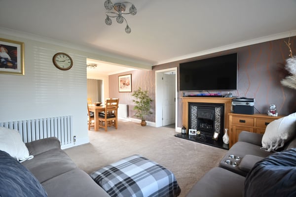 10' 07" x 10' 00" (3.23m x 3.05m) Carpeted, sliding door to rear garden, serving hatch, radiator