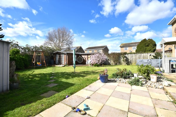 To the rear is a private lawned garden with a generous patio area, ideal for alfresco dining, together with additional shrubs and trees to the borders. There is also a useful side area that could be converted to more parking if needed as well as a fully insulated garden building with workshop.
