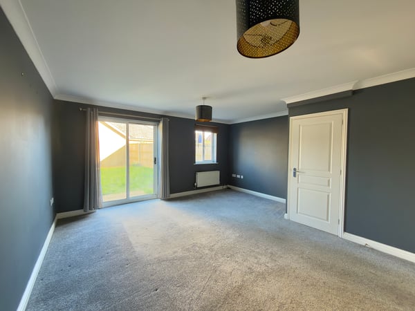 Fitted carpet, radiator, storage cupboard & French doors leading into rear garden.