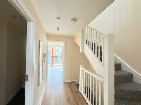 Access to cloakroom, kitchen, living room and stairs to second floor. Digital image entry phone.